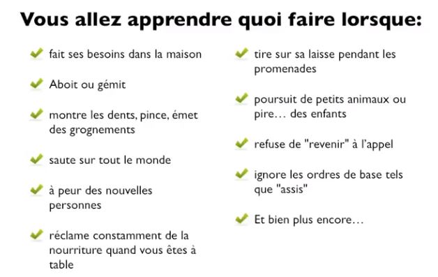 Vous êtes sur le point de découvrir comment des milliers de personnes ont éduqué leurs chiens et se sont débarrassés de leurs mauvaises habitudes en l’espace de quelques semaines.
